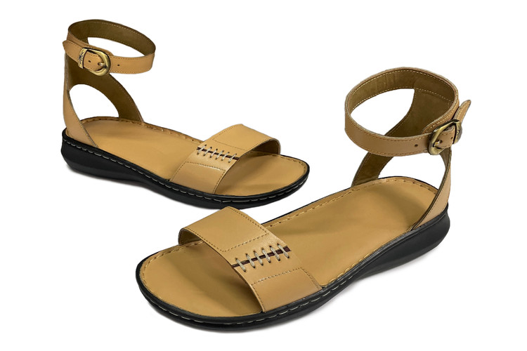 صندل چرم طبیعی زنانه تولید در 2 رنگ خردلی و مشکی